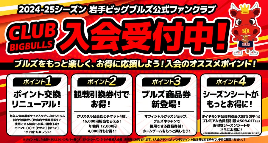 2024-25seasonも、高校生以下65歳以上の方は、2F自由席は無料での観戦可能です。ただし、CLUB BIGBULLS ぷるぞー会員(高校生以下/会費無料) ・シルバー会員(65歳以上/会費無料)へのご入会が必要となります。
