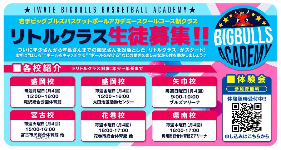 岩手ビッグブルズが運営している「岩手ビッグブルズアカデミー」では年少さんから年長さんまでの園児さんを対象とした『リトルクラス』がスタートしています☆