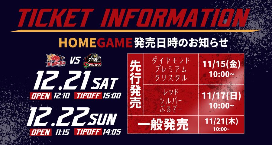 12/21(土)・12/22(日) vs.岐阜スゥープス