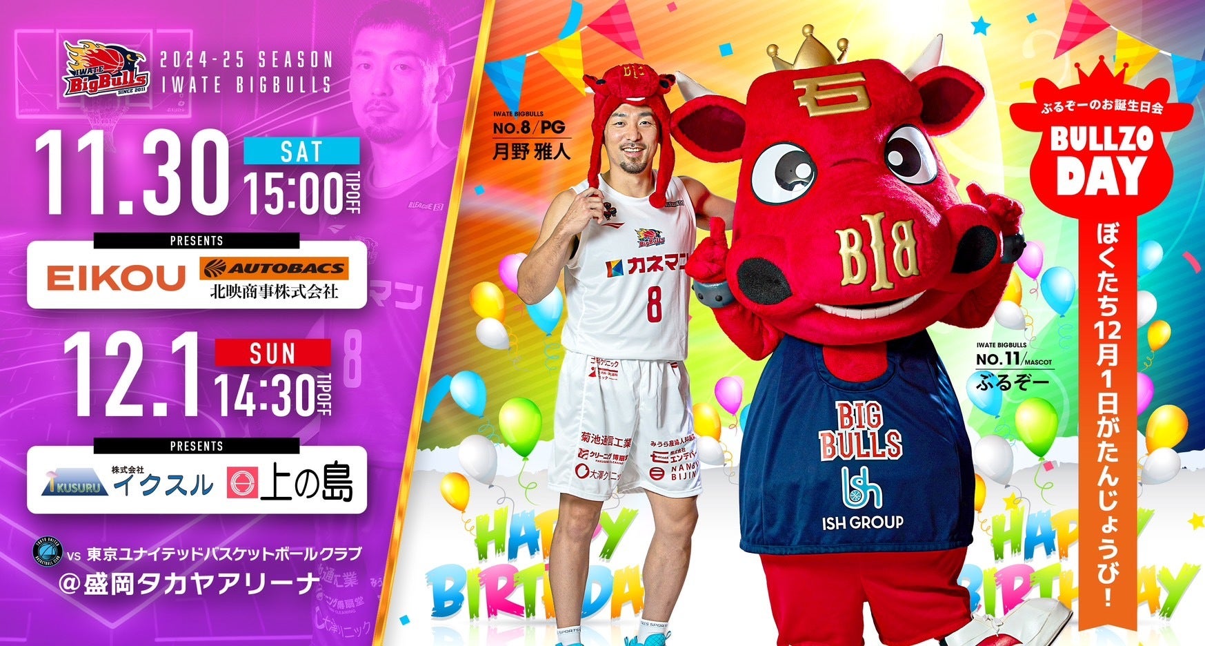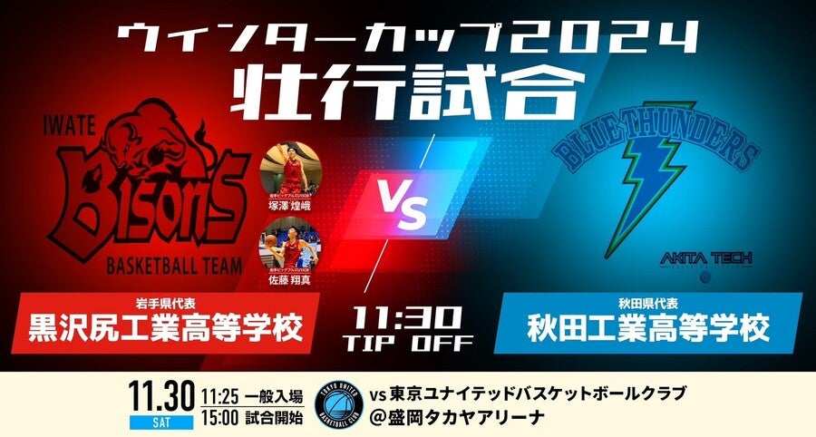 2024年11月30日(土)に盛岡タカヤアリーナで開催される 「2024-25SEASON B3リーグ戦 岩手ビッグブルズvs.東京ユナイテッドバスケットボールクラブ」にて『WINTER CUP 壮行試合』を開催いたします!