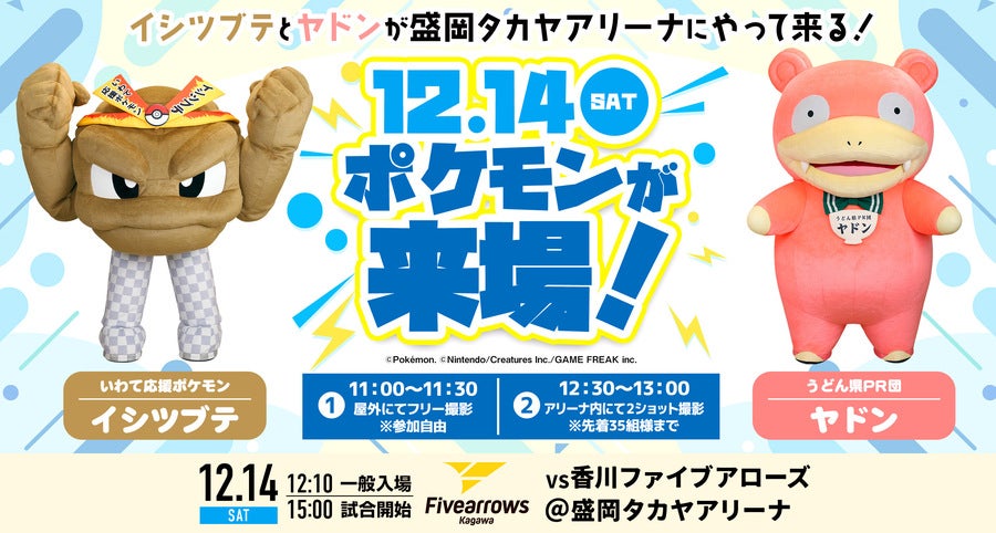 いわて応援ポケモンのイシツブテ、うどん県PR団のヤドンが盛岡タカヤアリーナにやってきます!
