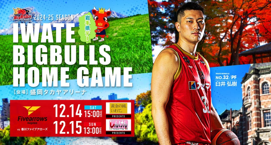 2024年12月14日(土)に盛岡タカヤアリーナで開催される「2024-25season B3リーグ戦 黄金の國、いわて。Presents 岩手ビッグブルズvs.香川ファイブアローズ」にポケモンの来場が決定!!