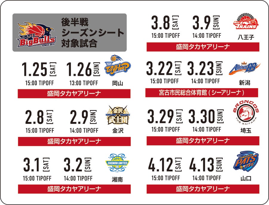 ぜひ、後半シーズンシートをお買い求めいただき、ブルズレッドに染まった会場でともに戦いましょう!