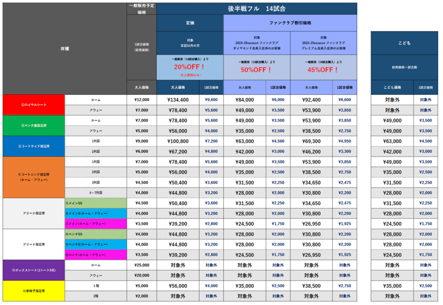 この度、2024-25season 後半戦シーズンシートを販売いたします。