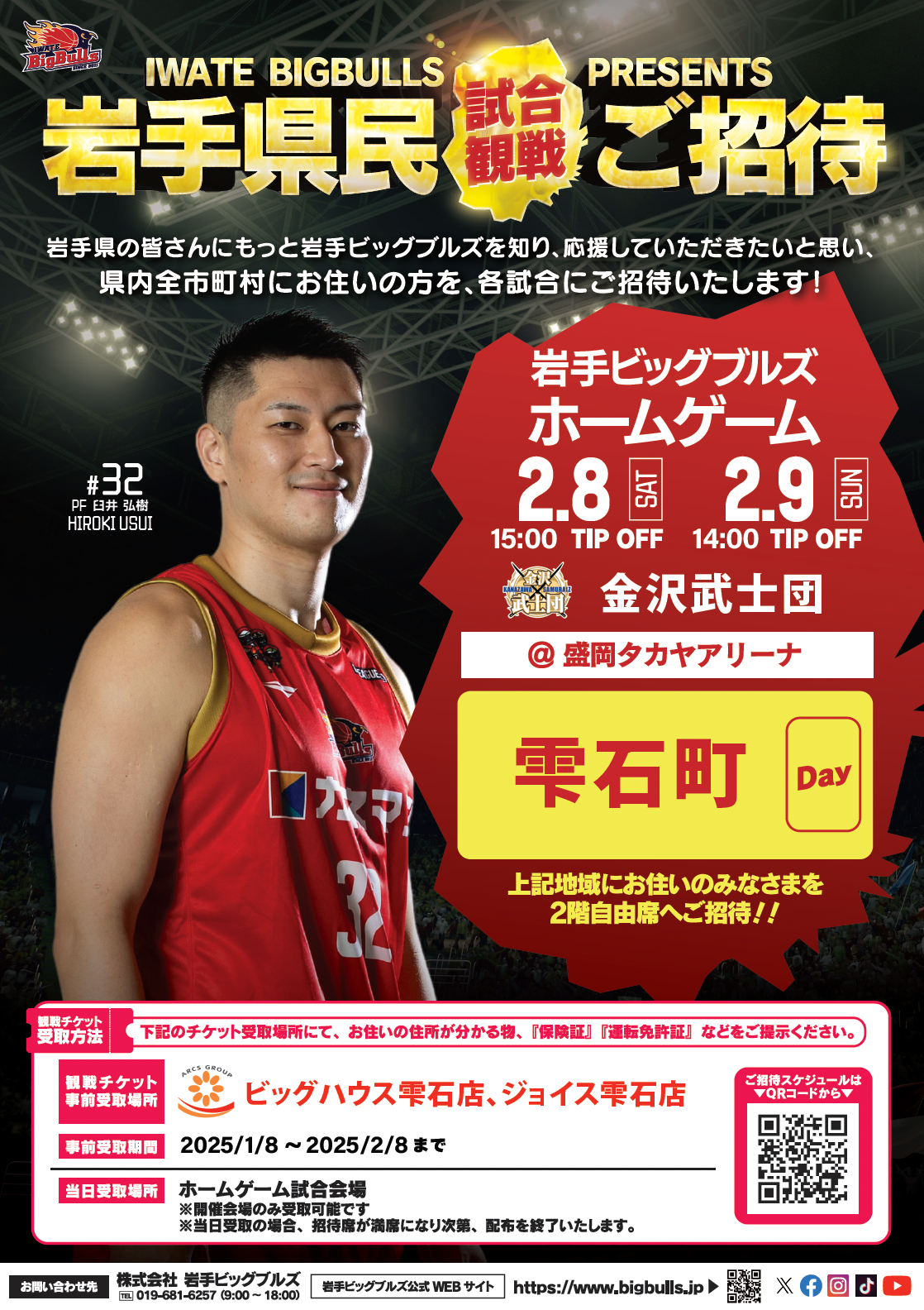 金沢戦 市町村招待 ~雫石町にお住まいの方~