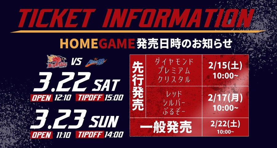 3/22(土)・3/23(日) vs.新潟アルビレックスBB
