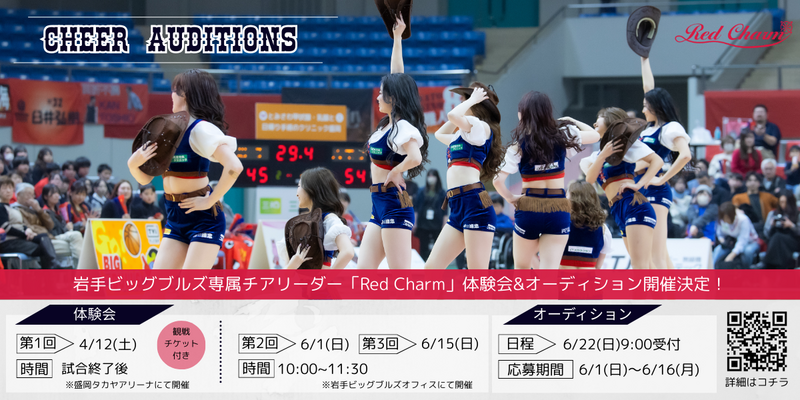 岩手ビッグブルズでは、Red Charm体験会とオーディションを開催いたします。