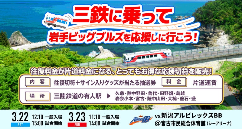今シーズンも三陸鉄道 様と宮古市 様にご協力頂き、三陸鉄道を利用し多くの方に岩手ビッグブルズの宮古開催の試合を観戦いただけるような岩手ビッグブルズ応援切符を両日ご用意いただきました!
