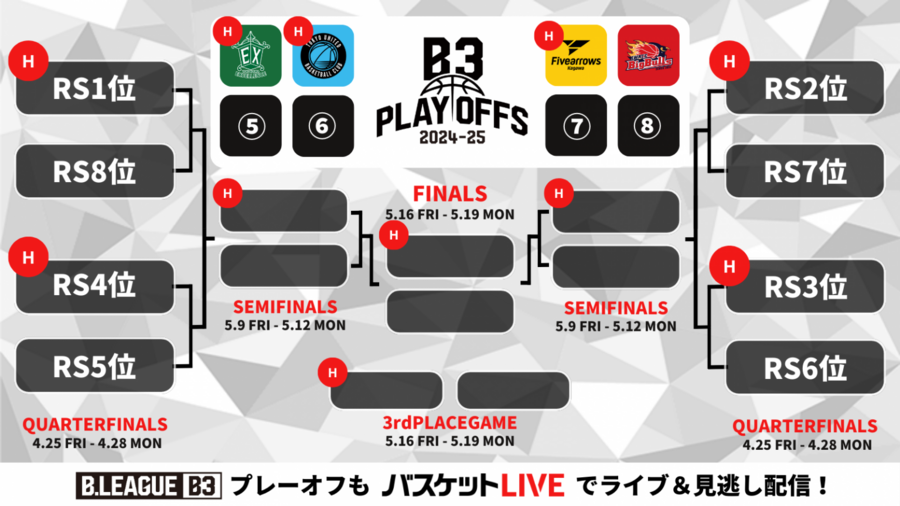 「B3リーグ レギュラーシーズン 2024-25」上位8クラブによるトーナメント戦(3戦2勝方式)