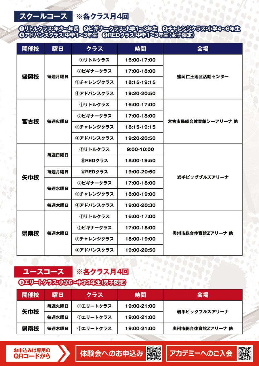 岩手ビッグブルズアカデミー情報は下記チラシをクリック↓