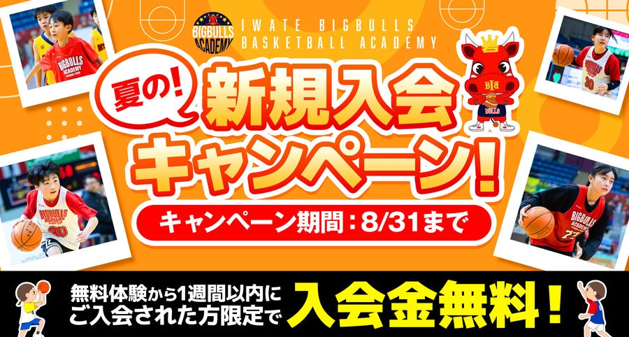岩手ビッグブルズアカデミーバスケットボールコースでは、2025年8月31日(日)まで「夏の新規入会キャンペーン!」を実施いたします。