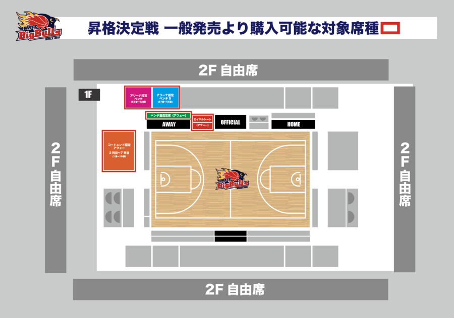 ◎コートエンド指定席(アウェイ)2列目~7列目(1番~10番)/60席
