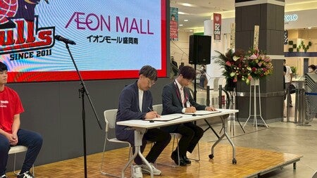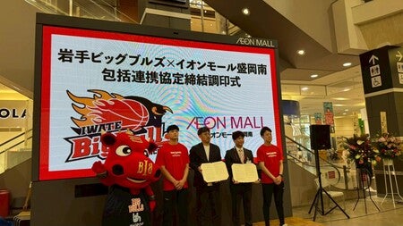この度、イオンモール盛岡南様と岩手ビッグブルズは、2025年6月20日(金)に、相互に緊密な連携と協力を図り、スポーツを通じたまちづくりや地域の課題解決に寄与し、地域の活性化や産業や地域文化の振興などを目的に包括連携協定に関する覚書を締結いたしました。