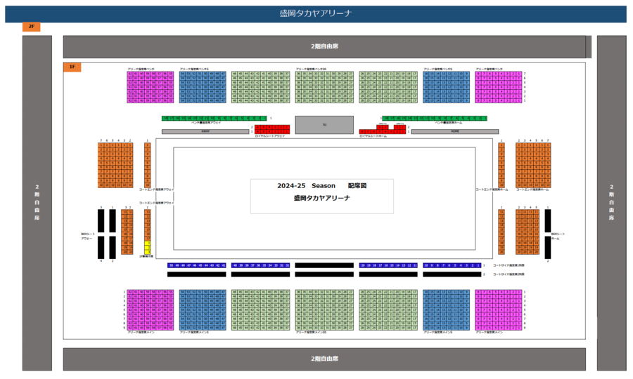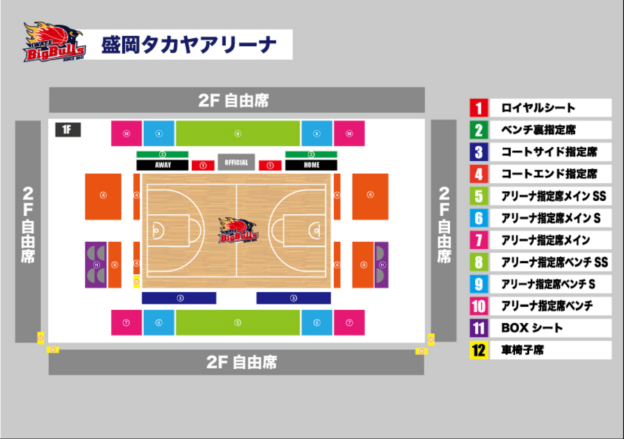 ※コート周り以外の指定席については、一関ヒロセユードーム、宮古市民総合体育館(シーアリーナ)では、変更がある場合がございます。