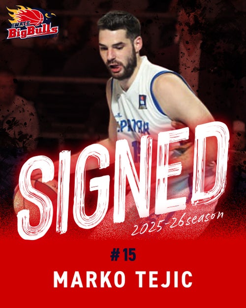 この度、岩手ビッグブルズでは、マルコ・テヒチ選手と2025-26seasonの選手契約(新規)が合意に達しましたのでお知らせいたします。