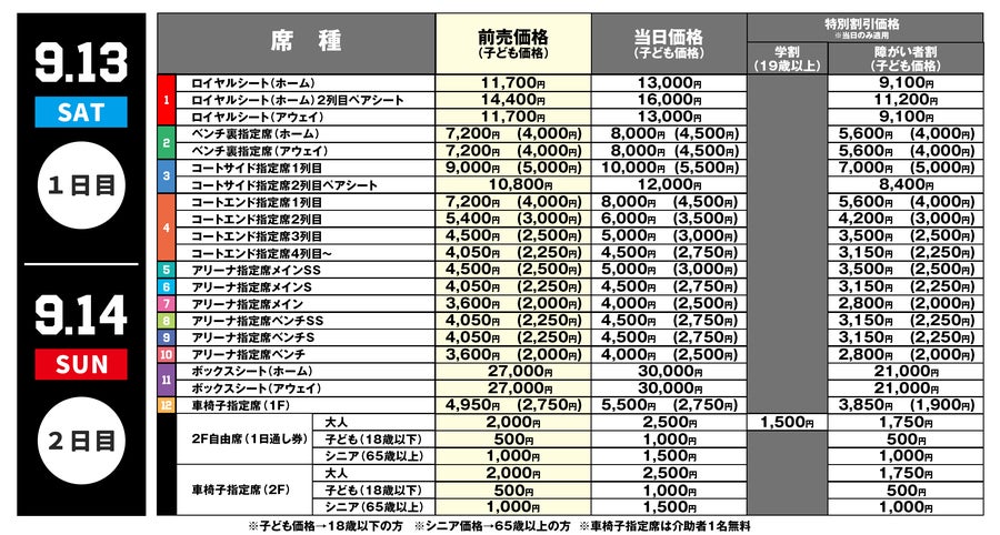 ※また今大会においては、岩手ビッグブルズ公式ファンクラブ「CLUB BIGBULLS」ぶるぞー・シルバー会員様の2階自由席無料特典の対象外となりますのでご了承ください、