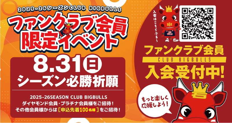 【イベント】2025-26シーズンCLUB BIGBULLS会員様限定イベント第三弾「必勝祈願」実施のお知らせ(2025.8.16更新)