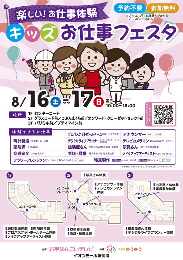 2025年8月16日(土)・17(日)にイオンモール盛岡南で開催される「キッズお仕事フェスタ」にブース出店します!