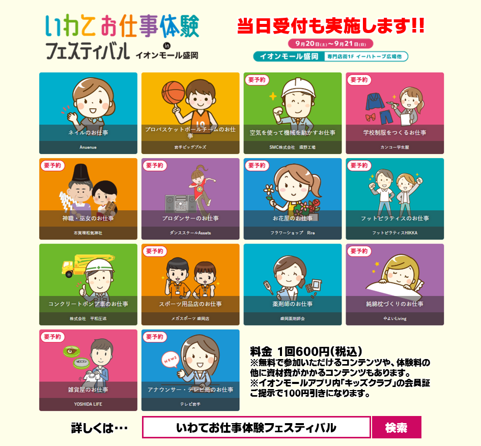 2025年9月20日(土)にイオンモール盛岡で開催される「いわてお仕事体験フェスティバル」にブース出店します!