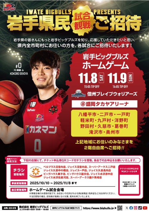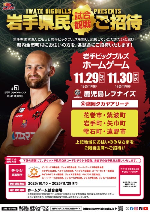 各試合一般発売日以降は岩手ビッグブルズが参加・実施するイベント会場でもご購入いただけます。