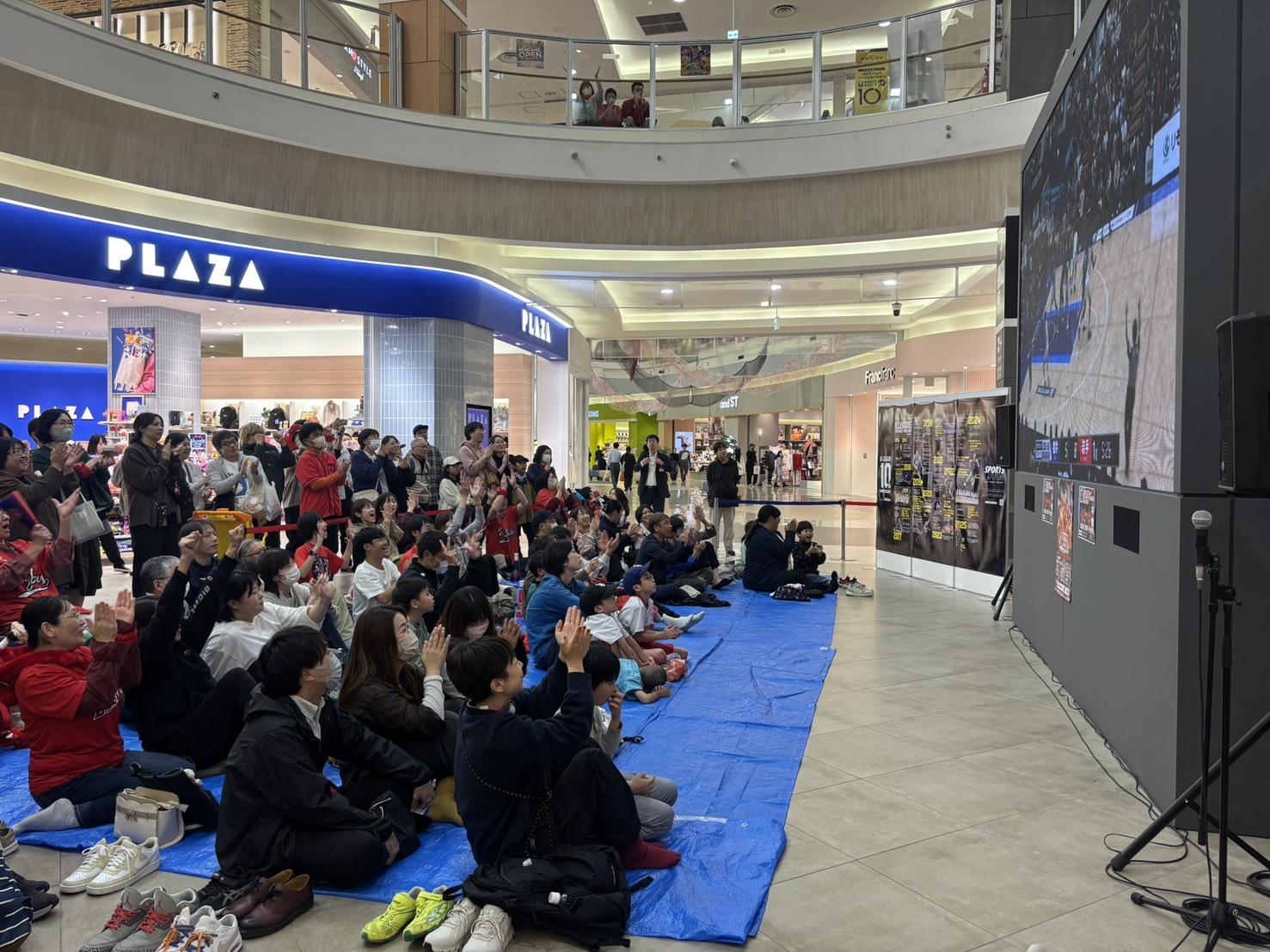 (会場は吹き抜けになっております。2F、3Fからも大型ビジョンは見えますのでご観戦可能です。)