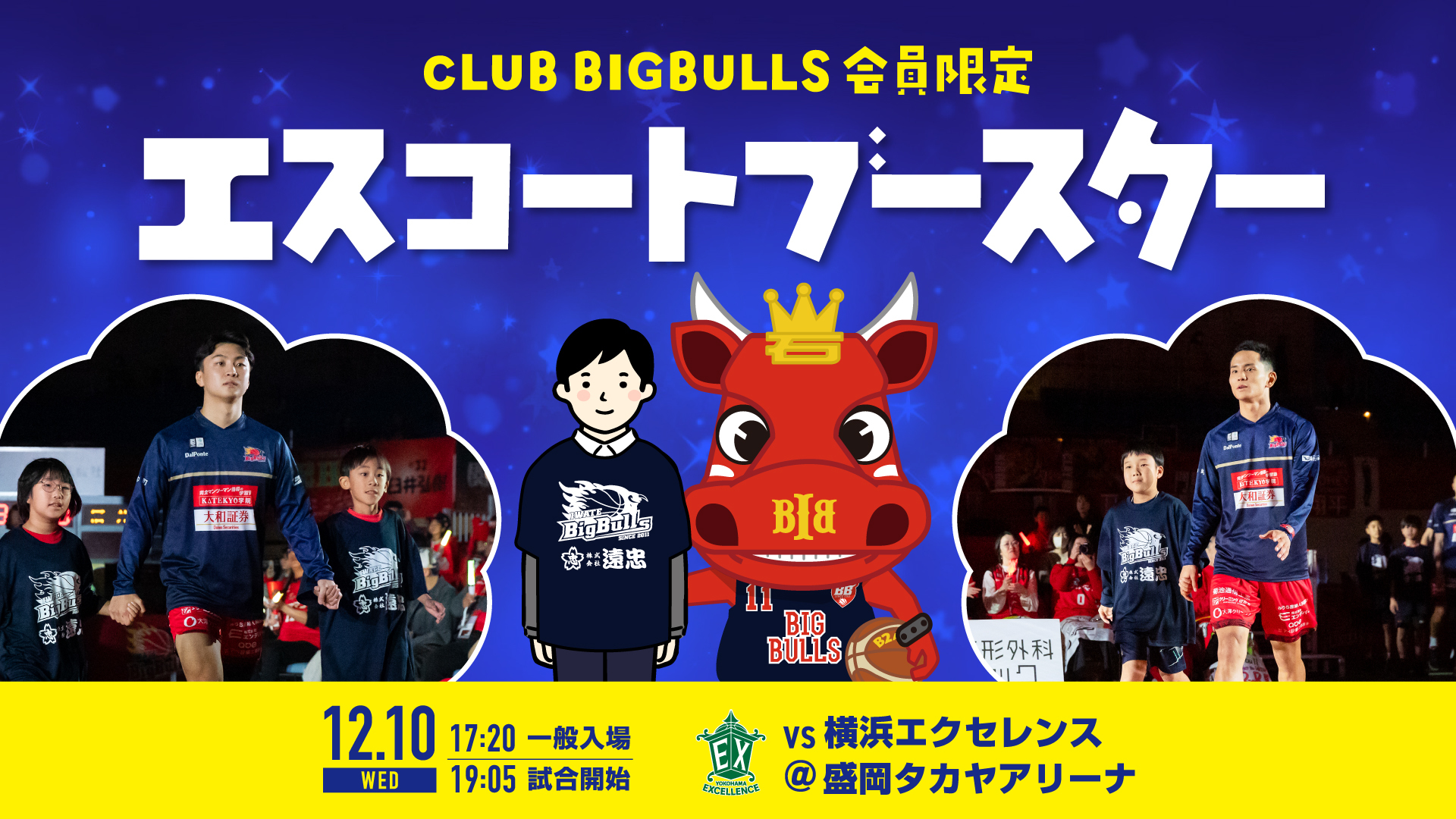 2025年12月10日(水)に盛岡タカヤアリーナで開催される「2025-26season B2リーグ戦 岩手競馬組合presents 岩手ビッグブルズ vs. 横浜エクセレンス」にてエスコートブースターを募集いたします!