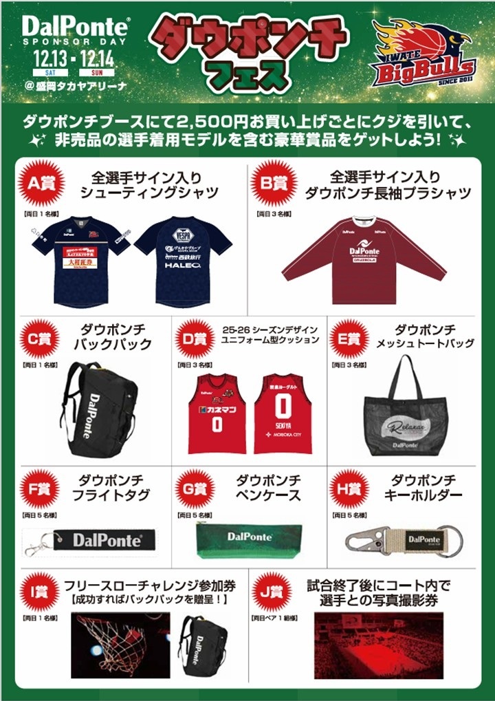 2025年12月13日(土)・14日(日)に盛岡タカヤアリーナで開催する「2025-26SEASON 第13節 岩手ビッグブルズvs.愛媛オレンジバイキングス」で、オフィシャルウェアサプライヤーである株式会社ZOTT様にご協力をいただき、『ダウポンチフェス』を開催します!