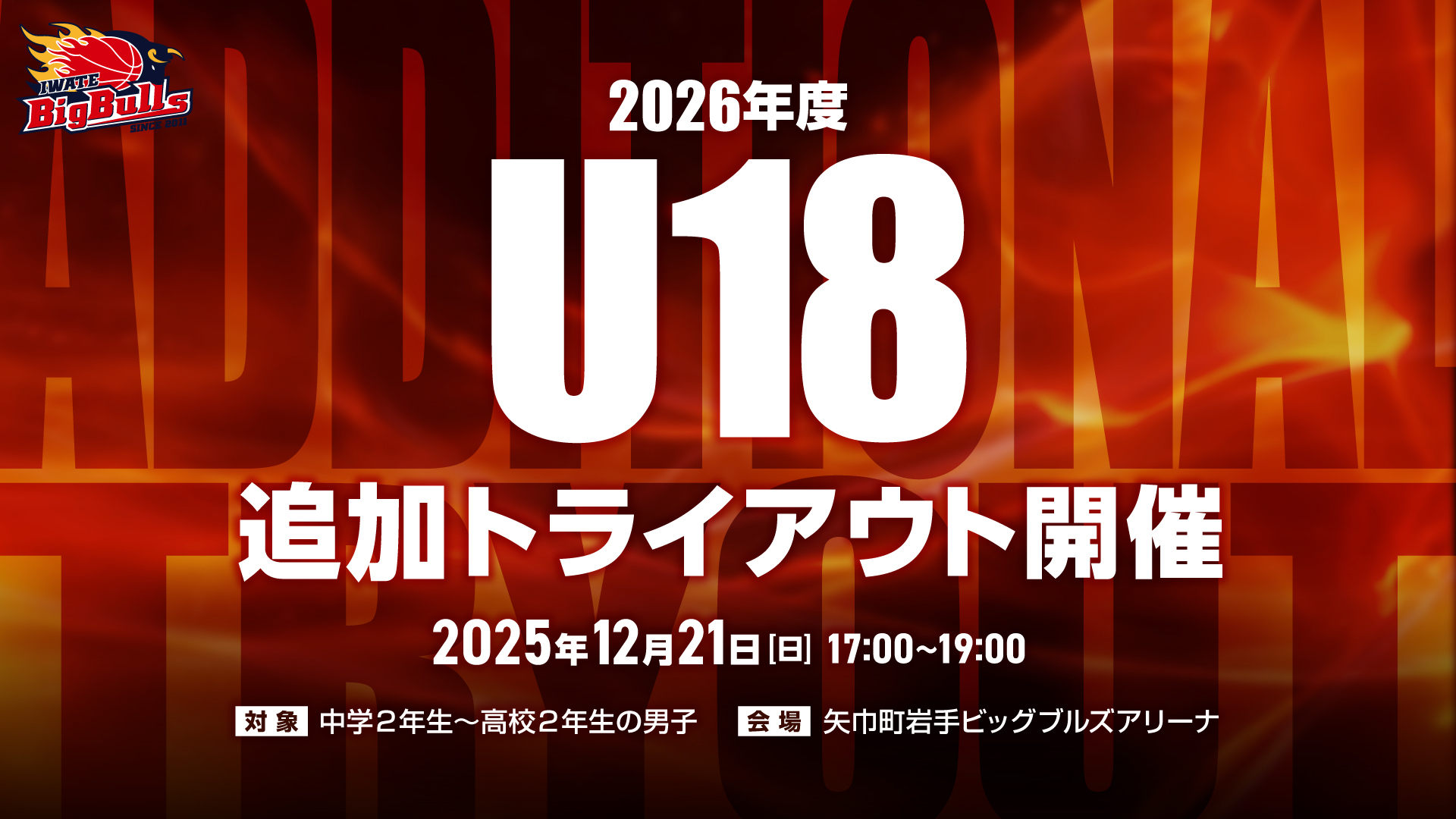 歴史ある初期メンバーとして岩手ビッグブルズU18の一員として活動したい、高みを目指したいというメンバーを募集し、下記日程にて追加トライアウトを開催いたします。