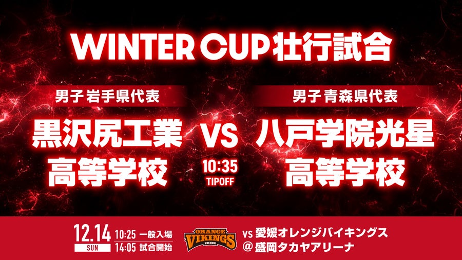 2025年12月14日(土)に盛岡タカヤアリーナで開催される「2025-26SEASON B2リーグ戦 イオンモール盛岡南&イオン東北株式会社Presents 岩手ビッグブルズvs.愛媛オレンジバイキングス」にて『WINTER CUP 壮行試合』を開催いたします!
