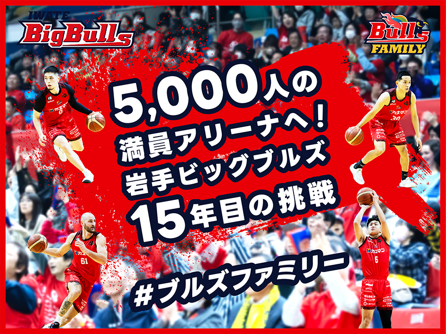 岩手ビッグブルズは、震災の年に創設されたプロバスケットボールクラブです。「復興のシンボルとなり、県民の皆さまとともに歩むクラブでありたい」という理念のもと、勝利だけでなく“存在そのもの”で希望を届けることを目指してきました。Bリーグでは決して大きなクラブではありません。けれども、困難な時期にも、温かな声は絶えることなく、アリーナには赤くやさしい熱気が満ちていました。その姿が、私たちを立ち上がらせ続けてくれました。そして15年目を迎える今、私たちは新たに「ブルズファミリー」という言葉を掲げました。それは単なる愛称ではありません。ファンも地域も、支える企業も、選手やスタッフも、互いの立場を超えて支え合う“家族のような存在”であるという宣言です。私たちは、クラブを応援するすべての人と「ともに創るクラブ」であり続けたいと考えています。2026年4月18日・19日に盛岡タカヤアリーナで開催されるホームゲームを、ブルズファミリー冠Dayとして実施し、5000人満員を実現したいと考えています。今回の挑戦は、岩手県のためだけではありません。スポーツが人の心に何を残せるのか、チームが地域に存在する意味とは何か――それを問い続け、示し続けるための試みでもあります。勝敗だけでは終わらない、人生の支えになれるクラブへ。その想いを胸に、私たちはこの挑戦に臨みます。