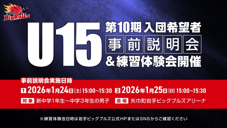 【岩手ビッグブルズU15】第10期 事前説明会および練習体験会のお知らせ