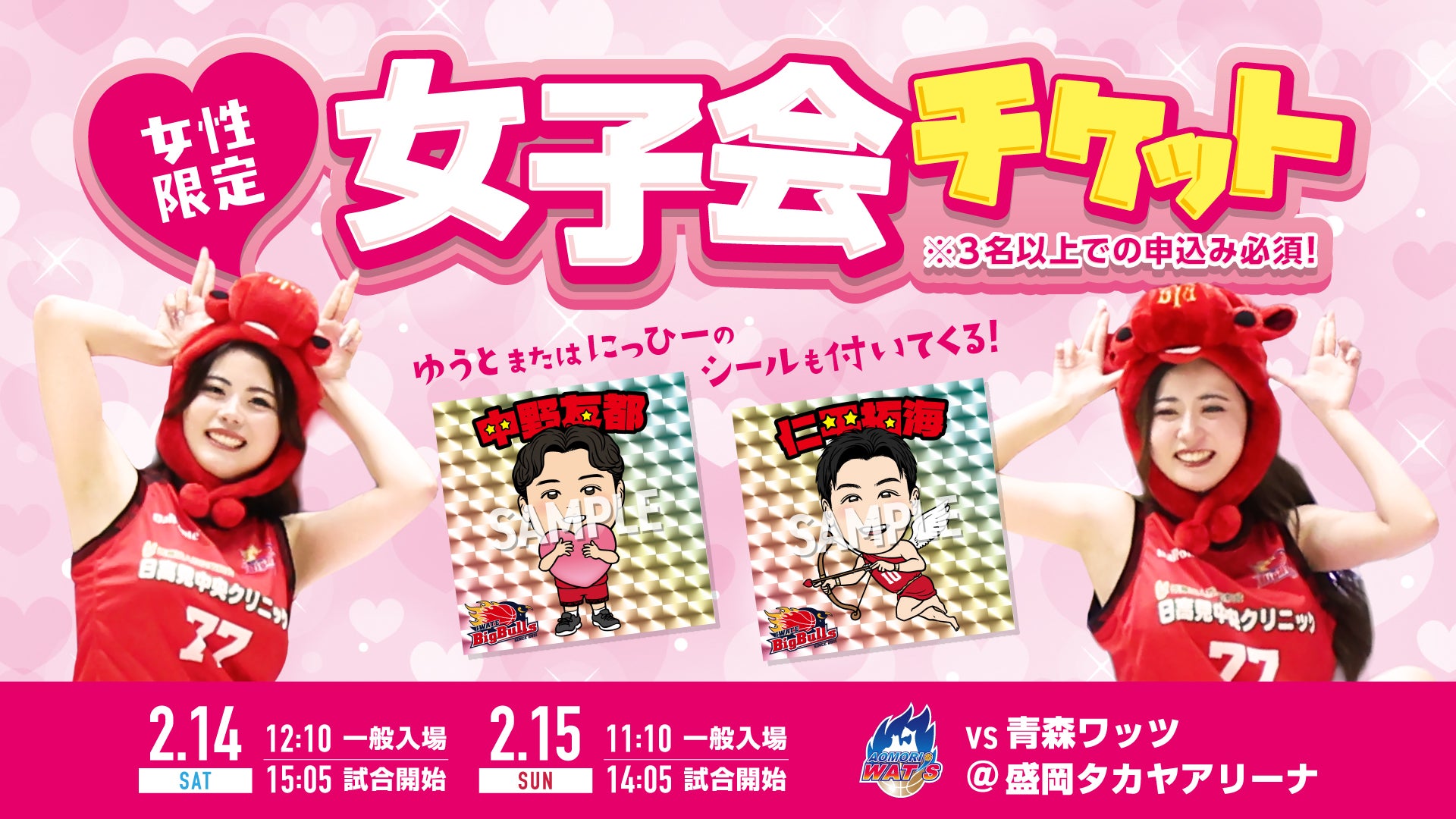 2月14日(土),2月15日(日)開催ホームゲーム(青森ワッツ戦)観戦チケットの販売についてお知らせいたします。