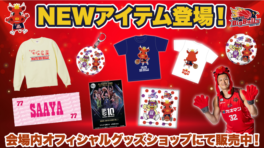 2025年12月27日(土)・28日(日)に盛岡タカヤアリーナで開催する「2025-26season 菊池通信工業/盛岡となん歯科・こども矯正歯科Presents 岩手ビッグブルズvs.福島ファイヤーボンズ」にて販売する新商品ラインナップをご紹介します!