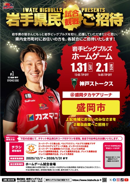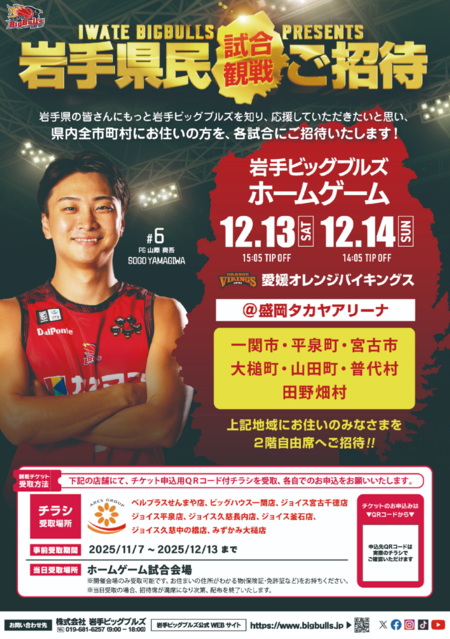 ※今シーズンよりご招待チケットの事前受取はBリーグチケット(WEB)でのお申込み限定とさせていただきます。