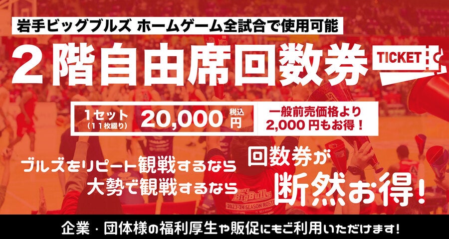 岩手ビッグブルズでは、2025-26シーズンに開催される全16節30試合で使用できる「2階自由席 回数券」を販売しております。