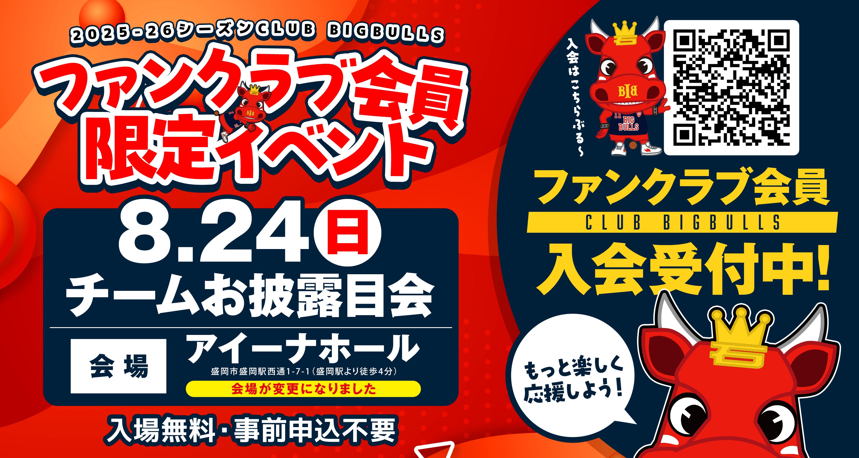 ※2025.8.7更新※【イベント】2025-26シーズンCLUB BIGBULLS会員様限定イベント第二弾 「チームお披露目会」概要(会場が変更になりました)